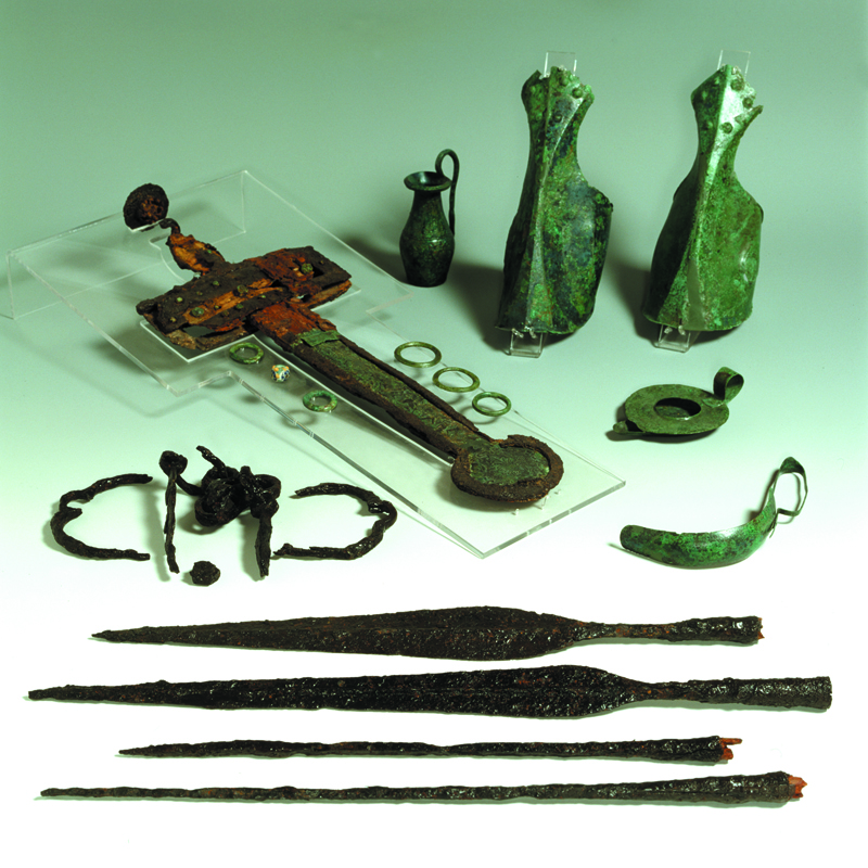 La cosiddetta “tomba del guerriero” è stata rinvenuta in contrada Casino e risale al VII secolo a.C. Il sepolcro principesco era ricoperto da blocchi di arenaria e conteneva un corpo di sesso maschile.