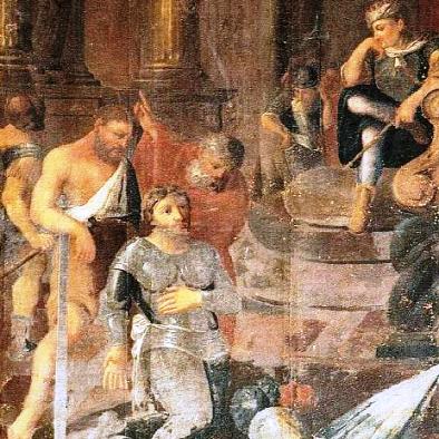 Sopra l’altare una tela di De Matteis, degli inizi del ’700, raffigura il santo prossimo al martirio. La firma dell’autore è apposta sul fodero della spada del carnefice. Un nastro dorato sotto il quadro ricorda la presenza del protettore con la scritta: