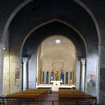 L’impianto complessivo della chiesa è rimasto sostanzialmente immutato, con la campata della navata centrale di larghezza doppia rispetto alle navate laterali e il posizionamento della torre campanaria all’incrocio della navata con il transetto, secondo il canone romanico. Manca invece il catino curvo absidale, abbattuto da un terremoto e sostituito nel ’400 da un vano rettangolare con tetto a capanna che ha accentuato la croce latina, in cui il vescovo Rufino fece installare una tribuna lignea per un coro a due ordini di posti. Altri elementi antichi sono le originarie aperture alle cappelle laterali, a sesto acuto, visibili anche sulla parete esterna di sinistra.
