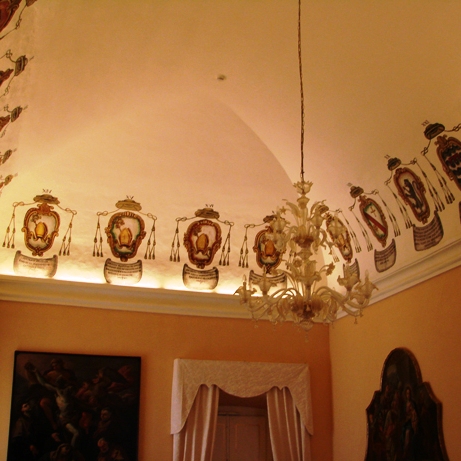 Tornando nella sala rossa e svoltando a sinistra si accede al salone degli stemmi dei vescovi di Rapolla.