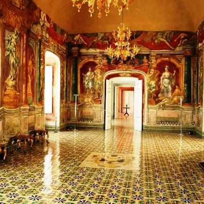 Durante i recenti lavori di ristrutturazione sono stati scoperti, sotto i modesti affreschi del secolo XIX che riproducevano vite di santi, pregiati affreschi neoclassici del Settecento, la cui composizione più significativa decora le pareti della Sala del Trono, collocata nell’angolo meridionale del palazzo.