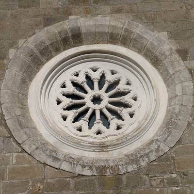 Il portale è del Seicento e l’interno si presenta a navata unica, suddivisa in tre campate coperte da volte a crociera con sesto rialzato. Annesso alla chiesa vi è un monastero del 1300 rimaneggiato nel corso dei secoli, con chiostro circondato da un deambulatorio. La volta e le pareti della chiesa sono completamente affrescate da un ciclo pittorico che rappresenta episodi della Bibbia.